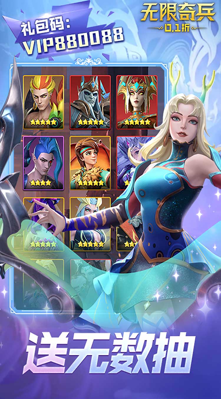 《无限奇兵:降临(0.1折送妲己)》是一款以奇幻世界为背景的角色扮演放置类移动网络游戏,玩家将在游戏中扮演一名冒险家,为了打倒祸害世界的邪神利赫姆而踏上征程。
